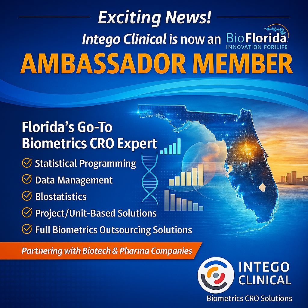 We are proud to announce that Intego Clinical is now an Ambassador Member of BioFlorida, strengthening our commitment to advancing the life sciences ecosystem across the state.